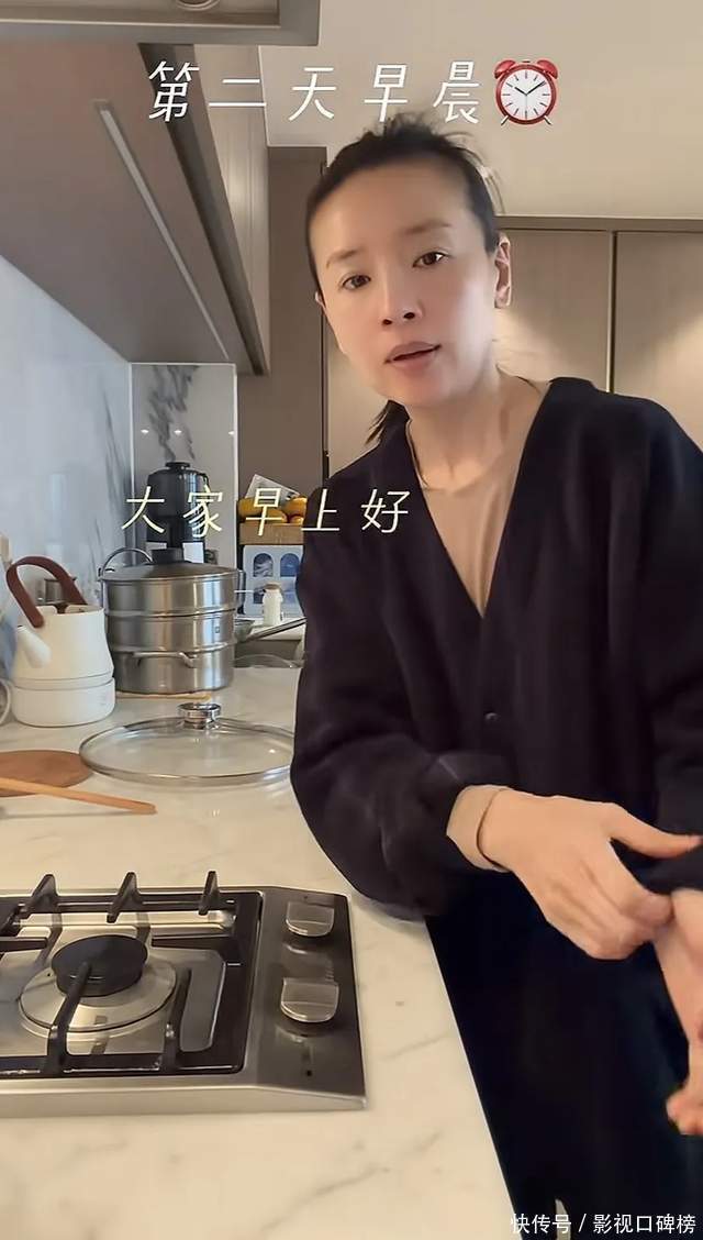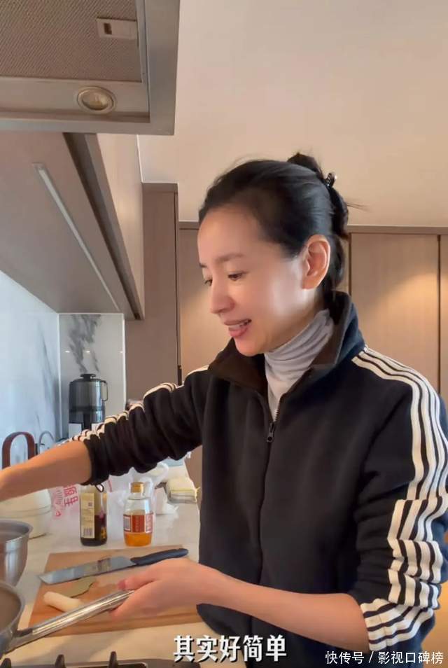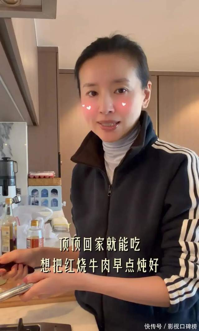 董洁一边在厨房做饭,洗菜,一边对着镜头说:真实我的生活很简单,送完孩子买个菜。今天的牛肉特别好就买了牛腩,炖一个红烧牛肉……顶顶(儿子)回家就能够吃。从她的言语中听出,心态很好,整个人很放松。