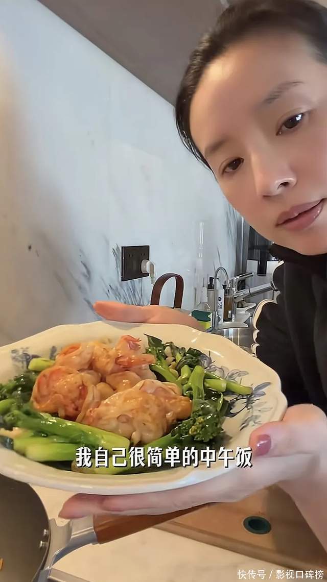 董洁表示自己的午饭比较简单,青菜妙虾仁,对于她而言营养均衡就好!