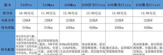 510Max版本售价贵出1万元,配置端增加了前后排座椅加热/通风、50W手机无线充电、全景天窗、18英寸轮毂、氛围灯等功能,虽然增加的配置比较实用,但在该版本的基础上额外增加1万元预算已经可以买到630Max版本,能够带来更强的动力以及更长的续航,显然后者的性价比优势明显。