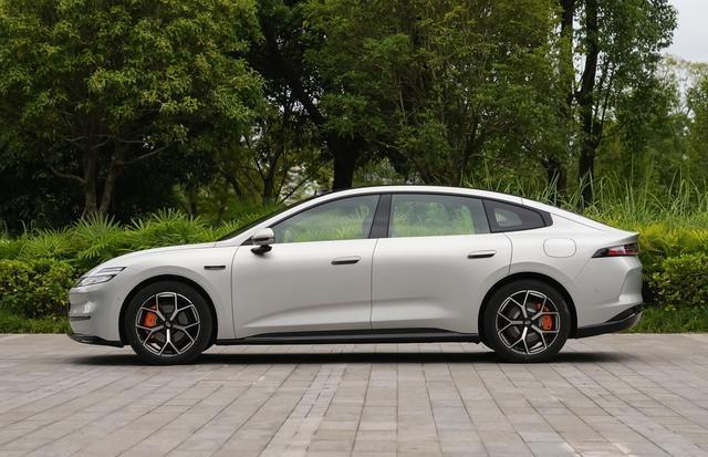 车身侧面有着溜背式造型,线条流畅舒展,风阻系数为0.205,无边框样式的外后视镜、半隐藏式机械门把手以及19英寸大尺寸轮毂等元素组合在一起,展示出了它时尚的一面。新车提供了六款外观车色,包括松影黑、云帆白、天际灰、浮光银、琉璃蓝和落霞紫,满足了不同消费者的需求。