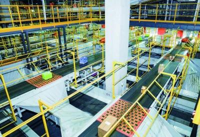 申通快递南京转运中心,传送带矩阵正在运输快件。 南京日报/紫金山新闻记者 戚珂嘉 摄