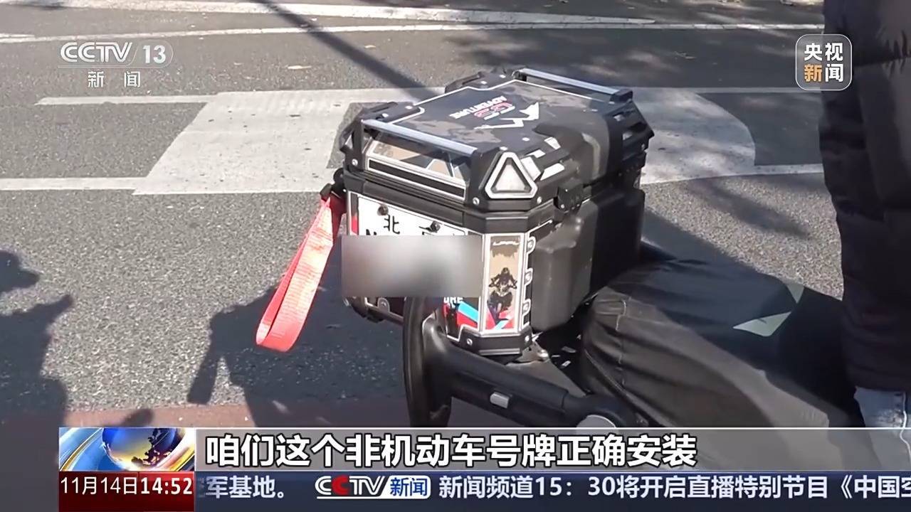 r民警检查发现,这辆电动自行车号牌的安装位置也不合规。