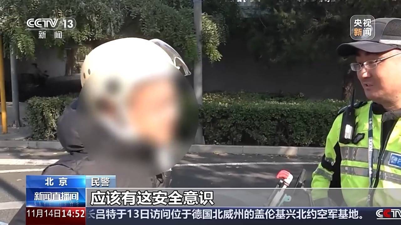 民警:看您也戴了头盔,应该有安全意识,为什么想起从这儿走?